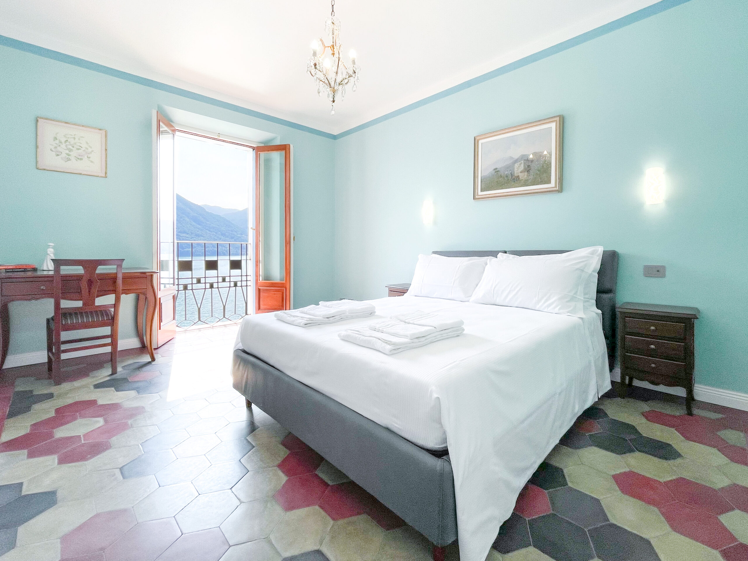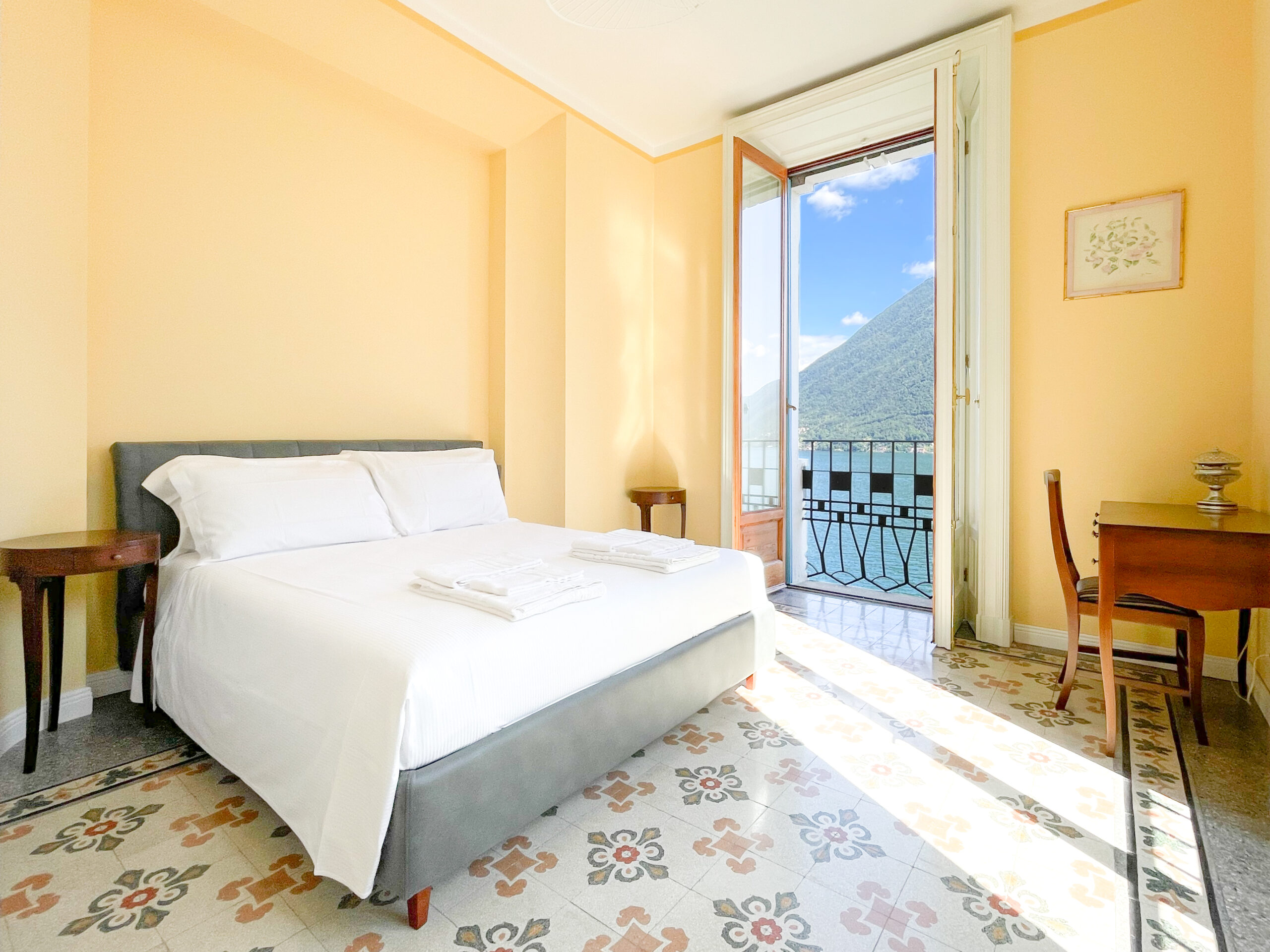 The Villa has six elegantly appointed, air-conditioned bedrooms, each with classic furnishings and serene lake views, accommodating up to 12 guests in luxurious comfort.