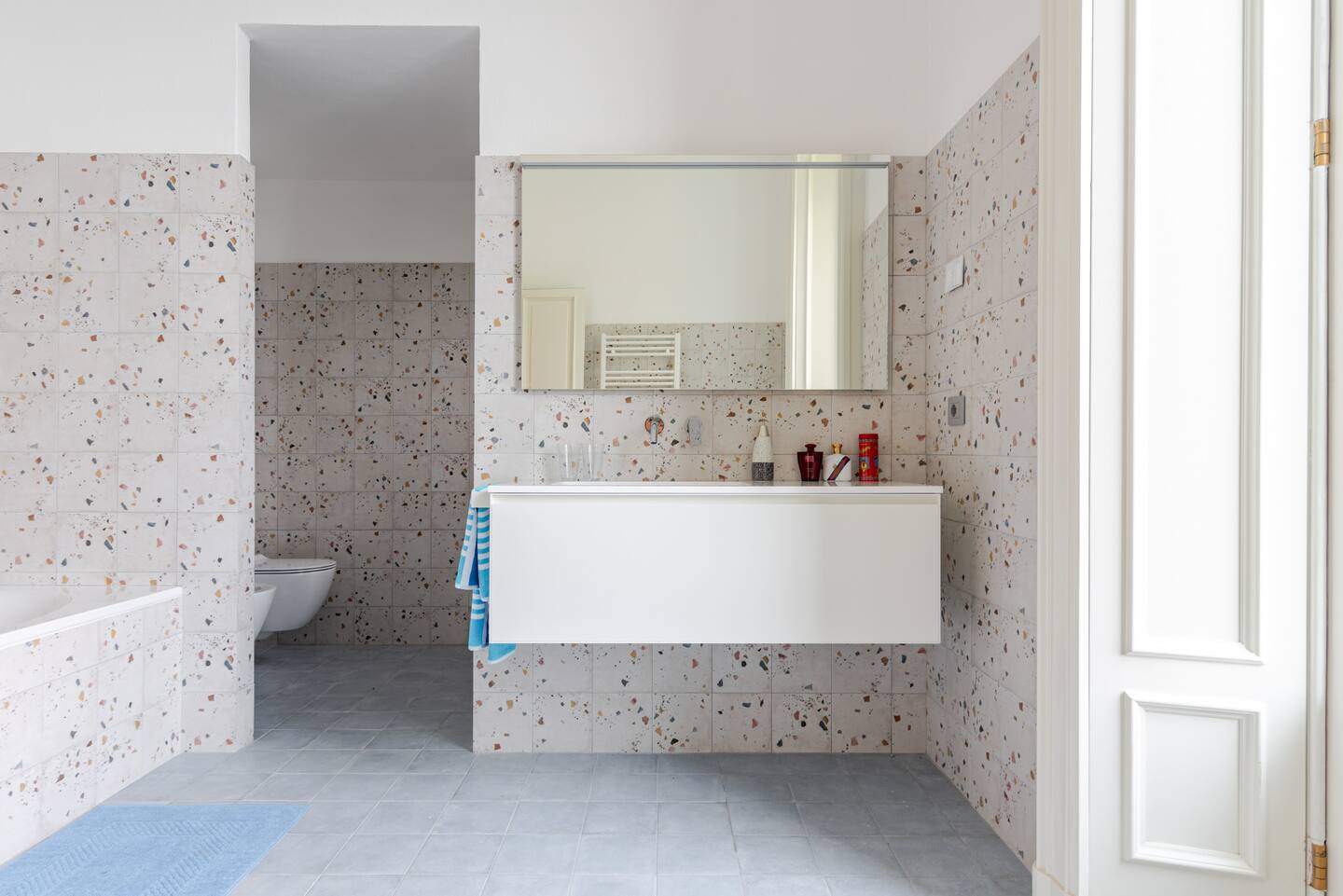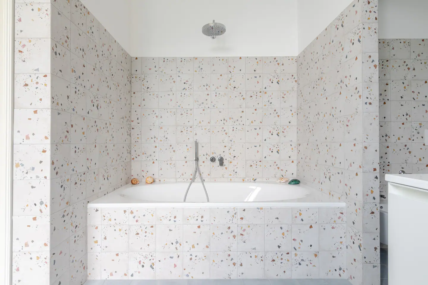 Our villa features two expansive terraces with dining areas and a hot tub, a long terrace stretching the length of the villa, and a private balcony on the third floor.